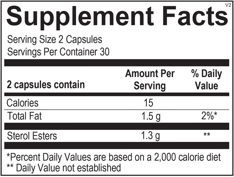 Research has shown that phytosterols, plant-based compounds structurally similar to cholesterol, compete with cholesterol for absorption and thus play a key role in supporting healthy cholesterol levels. According to the FDA, "products containing at least 0.65g per serving of plant sterol esters, taken twice daily with meals for a daily total intake of at least 1.3 g, as part of a diet low in saturated fat and cholesterol, may reduce the risk of heart disease." The National Cholesterol Education Program (NCEP) of the National Heart, Lung and Blood Institute of Health suggest the use of plant sterols to promote cardiovascular health. The Plant Sterols formula includes a variety of purified plant sterols: campesterol, stigmasterol, b-sitosterol, and other cholesterol-like compounds. Two capsules provide the recommended 1.3 g of plant sterol esters for maximum cardiovascular benefits.